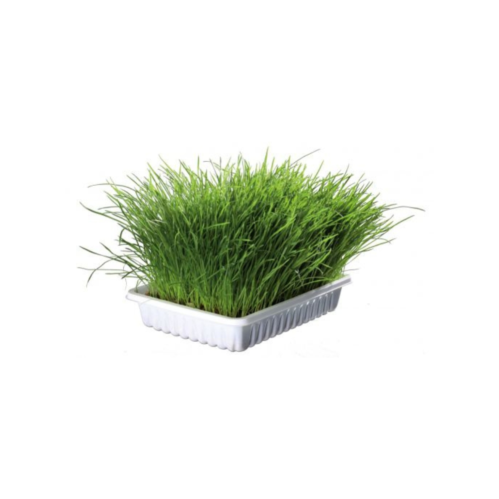 Hierba fresca y semillas para que tu gato disfrute de un entretenimiento natural que favorece su bienestar y salud digestiva.