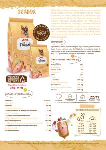 Arion Friends Senior es un alimento completo para perros de razas grandes de más de 7 años y perros de razas pequeñas que superan los 9 años. Su fórmula antienvejecimiento contiene altas dosis de vitamina E como antioxidante, una baja concentración de fósforo para prevenir el deterioro renal y condroprotectores para proteger las articulaciones. Contiene proteínas de alta calidad y muy nutritivas como la carne de pollo y el huevo deshidratado.
