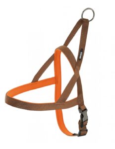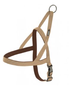 Cómodo arnés fabricado combinando nylon y neopreno. Dos materiales de gran resistencia y comodidad. Con cierre con acabados de color antracita y metal lo que le brindan estética y gran resistencia. El neopreno interior protege a nuestra mascota.