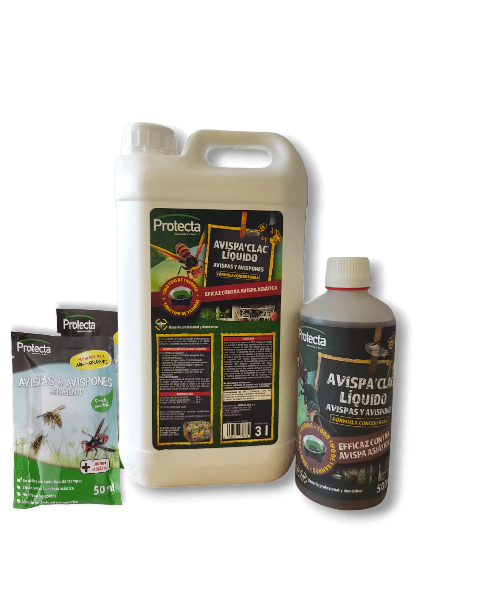 Atrayente concentrado polivalente sin olor desagradable y sin fermentación. Sólo a base de ingredientes naturales, extractos de plantas y frutas, y aromas. Este atrayente se diluye en el agua y atrae a las avispas y avispones. Gracias a su composición, no despierta el interés de las abejas y no son atraídas hacia la trampa. Probado contra la avispa asiática, sin necesidad de añadir ni quitar nada. Tiene un efecto inmediato.