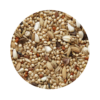 La fórmula contiene alpiste, maíz blanco, avena pelada, maíz rojo, cártamo, trigo, níger, linaza, arroz con cáscara y dary, proporcionando proteínas, grasas saludables, fibra y energía para un desarrollo óptimo y un plumaje brillante.