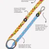 Este correa es super resistente y el mosquetón que incluye es duro de roer, tu perro no se escapará ni aunque quiera con su cierre de seguridad. Con diseños chulis a cada lado para que seáis la envidia del parque. Esta correa tampoco se olvida de ti, y hemos cubierto el asa con neopreno acolchado para que no te hagas daño ante cualquier tirón