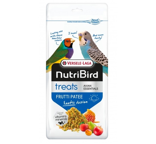 Versele-Laga Nutribird Frutti Patée es una pasta de cría y papilla semi-húmeda especialmente formulada para cubrir las necesidades nutricionales de canarios, periquitos y aves exóticas durante etapas clave como la cría, el crecimiento y la muda.