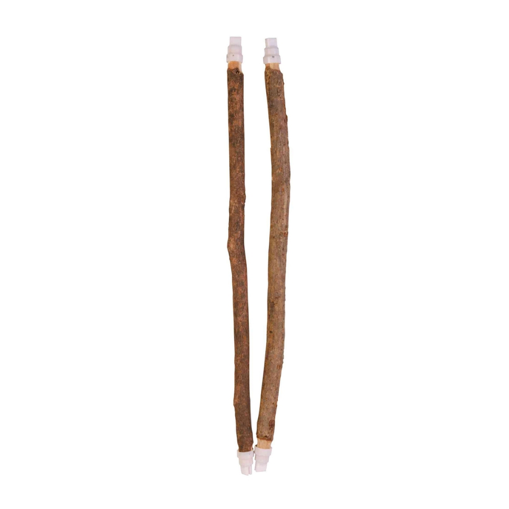 Las 2 Perchas Natural Living 35 cm están fabricadas en madera natural y cuentan con extremos de plástico para un montaje seguro en la jaula. Su forma natural es ideal para las patas de las aves, ayudando a ejercitar los músculos y favoreciendo su bienestar físico y mental.