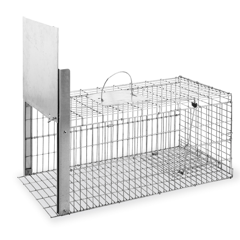 Este cesto de captura plegable es ideal para la captura de animales en exteriores. Se ha fabricado en chapa galvanizada por su resistencia a los factores ambientales adversos. En algunas ocasiones estos cestos de captura se pasan varios días a la intemperie hasta lograr su objetivo. Se debe colocar un poco de comida en su interior para que el animal sienta motivación y curiosidad para entrar. Una vez dentro pulsará el anclaje para cerrar la puerta de forma rápida y segura. Debemos tener en cuenta que esta jaula no realiza ningún daño al animal.