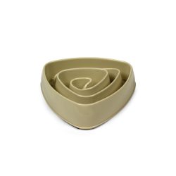 Comedero plástico en forma triangular con obstáculos en su interior para controlar la velocidad de ingesta de los perros. Tiene una capacidad de 500 ml. Tiene forma de triángulo que en el interior tiene muros para impedir un acceso rápido al alimento. La mascota debe encontrar al alimento con la boca y olfato y luego lo podrá ingerir. Se recomienda usar en los primeros meses de vida para educar al perro.