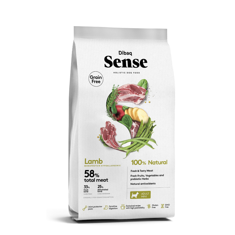 COMPOSICIÓN: Carne fresca de cordero 33%, carne deshidratada de cordero 25%, guisantes pelados, patatas, aceite de pollo, pulpa de remolacha, hidrolizado de hígado de cordero, verduras y frutas frescas 4% (judías verdes y manzana), Ceratonia siliqua, aceite de salmón (fuente de ácidos grasos omega 3 y 6), sustancias minerales, pack protector articular (condrotina sultato, glucosamina sulfato y MSM), yuca, raíz de achicoria (fuente de inulina-FOS), levaduras (MOS) y plantas aromáticas con propiedades antioxidantes naturales (romero, tomillo y orégano).